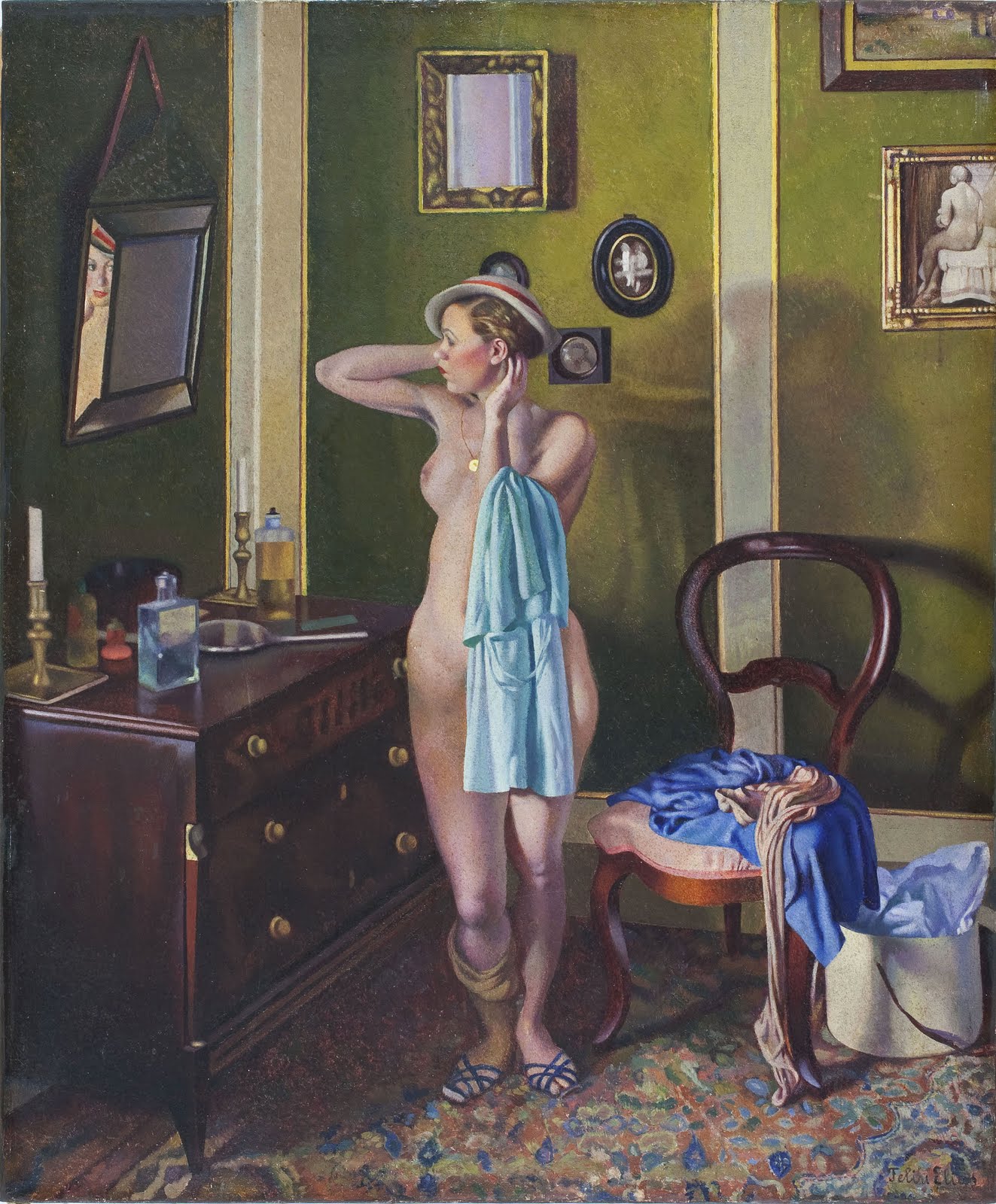 El MNAC disposava de set pintures ja: sis natures mortes i la pintura “La Galeria” amb presència de la figura humana. Aquest tema Elias el va practicar bastant durant els anys 20 i 30 i és l’etapa a la que pertany l’oli adquirit. “El barret nou” mostra una noia nua, tapada en els punts més provocatius, emprovant-se un barret. Pintura d’estil clar i lluminosa. Aquest tipus de pintura connecta amb els llenguatges europeus de l’època de retorn a l’ordre. La nova pintura es podrà veure a la col·lecció permanent d’art modern, a partir del setembre.