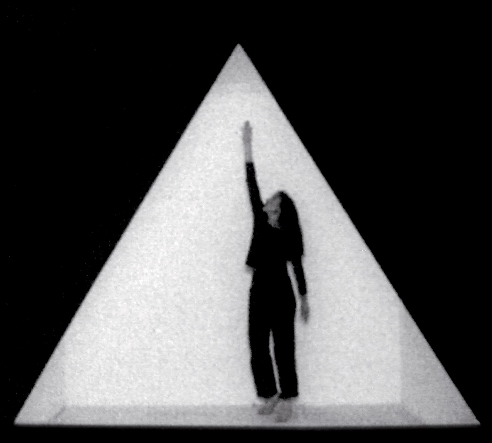 La barra en diagonal em recorda els tirants dels ponts de Nova York i per tant un element fort i en tensió. Un element estructural que pot ser simbòlicament substituït per una persona o per una idea necessària. Àngels Ribé disposa d’una poètica particular que convida a anar més enllà de l’evident. La imatge que il·lustra el text pertany a l’obra “Triangle”, una projecció en DVD del 1978. Imatge cedida pel MACBA.