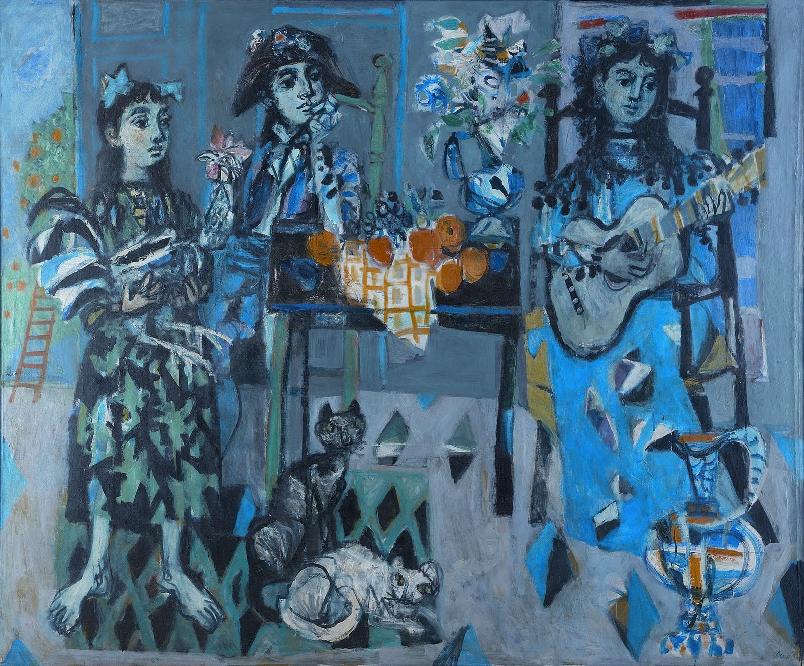Goya és un dels artistes estel·lars, però també hi trobem altres artistes del seu temps amb els que hi hagué influències mútues o contactes puntuals, com és el cas de Bayeu i Maella. La mostra ha portat obres importants de Goya, o almenys emblemàtiques. Comencem per la pintura “El dos de maig de 1808 a Madrid”. Però també presenta gravats de les sèries dels “Caprichos”, “Los Desastres” o de la Tauromàquia. Alguns dels aspectes de crítica social o d’estil podem intentar-los rastrejar en l’obra d’Antoni Clavé, per exemple. En el Museu Diocesà se’ns mostra una pintura de tons blaus amb uns músics, que podrien fer pensar amb temes innocents dels tapissos de Goya. Clavé es cercaria qui més qüestions pictòriques: volums, tons, formes, etc. A part de Clavé també trobem altres artistes del segle XX com Gargallo, Saura o Guinovart. L’exposició es podrà veure a partir de dijous 15 fins el 8 de gener. L’obra que il·lustra l’article correspon a l’obra de Clavé. La imatge ha estat cedida pel Museu Diocesà