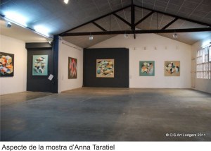 Actualment exposen -fins divendres-, l’obra de Taratiel a les Corts de Barcelona, al carrer Morales, on hi havia l’antiga colònia Castells. “Fugim del cub blanc”, ens diu Gaudes. El local havia estat un estudi d’assaig de dansa contemporània.. Taratiel treballa sobre tela i ha creat una instal·lació per intervenir a l’espai. A CIS Art Lodgers els hi interessa molt la relació de l’artista amb l’espai i és aquest el criteri que segueixen per treballar i introduir artistes a la seva cartera.