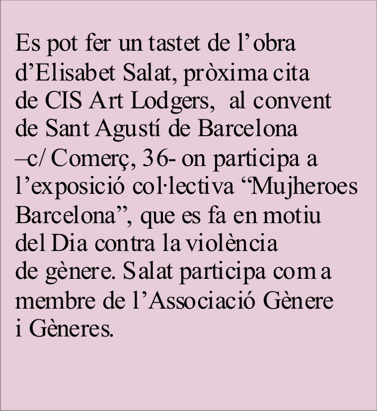 Centelles. Fa pocs dies, vaig rebre la notícia de que la galeria de Paqui Delgado, de Sant Sadurní d’Anoia, tancava. I al mateix temps rebo l’anunci de que es presenta un nou projecte galerístic en societat: CIS Art Lodgers. Delgado tanca “perquè no pot més”. La crisi. Però aquesta crisi té esquerdes d’esperança: l’altra carta la signen la Carmina Gaudes i la Sílvia González, una biòloga i una enginyera que els agrada molt l’art, han fet un màster de gestió i analisis d’art contemporani i han ajuntat esforços per crear CIS Art Lodgers.