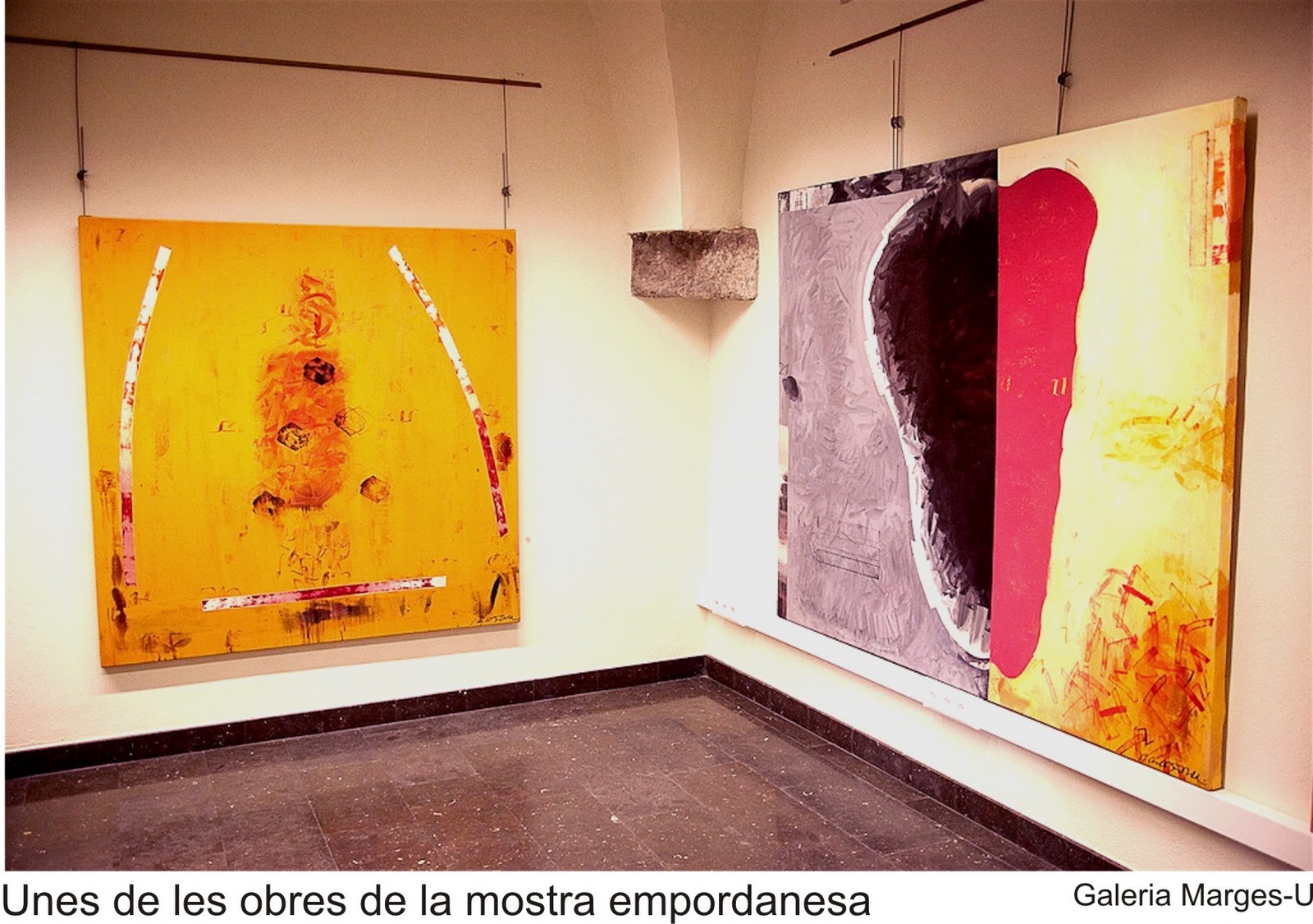 Portilla és pintor, de to matèric; Carbo Berthol mostra dues obres de gran format, també de línia matérica. Sánchez és un escultor de Salamanca afincat a Barcelona. Mostra dues peces de dos metres d’altura, realitzades amb fusta de pi. Finalment el japonés Kihira, resident també a terres catalanes, exposa escultura i relleus realitzats amb papers i pasta de paper carregats de minerals i pigments. Finalment, es pot veure obra de la pintora Carme Miquel. La galeria Marges-U, que porta deu anys en aquest negoci, està ubicada a Cadaqués, al carrer Unió, 12. Tel. 972.258.543. Carbo Berthol, és de fet qui gestiona aquest espai. Aquest artista i Alfredo Sánchez comparteixen, actualment, una altra exposició a l’Espai d’art Mas d’en Dorria, a Fortià, també a l’Empordà. La mostra de Cadaqués es pot veure fins el 26 de febrer.