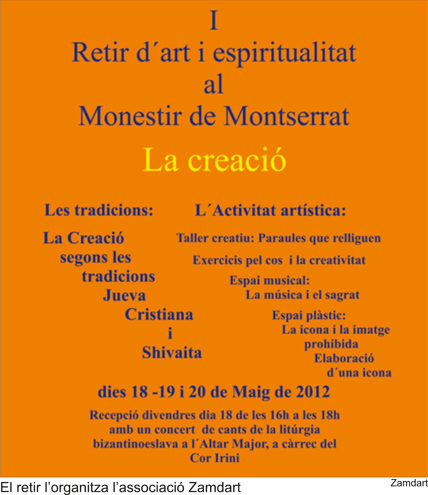 E.D.-Hi ha dos aspectes principals: Els comentaris a propòsit de les tradicions, en aquest cas, jueva, cristiana i shivaita. I les activitats pròpiament artístiques. Bàsicament es tracta de que els assistents al retir facin l’exercici de relacionar els conceptes espirituals exposats, amb les capacitats corporals i artístiques. Es tracta de donar forma, color i expressió a conceptes que normalment, i de forma potser més remarcada a occident, queden sempre en un pla teòric i mental. L’espiritualitat també és corporal, i en aquest sentit les arts tenen el seu paper. Històricament ha estat així fins el Renaixement. Des de aquesta perspectiva, l’exercici de l’art és una forma de meditació i d’accés a la contemplació i realització espiritual. Per més informació us podeu posar amb contacte amb els organitzadors al mail zamdart@zamdart.com
