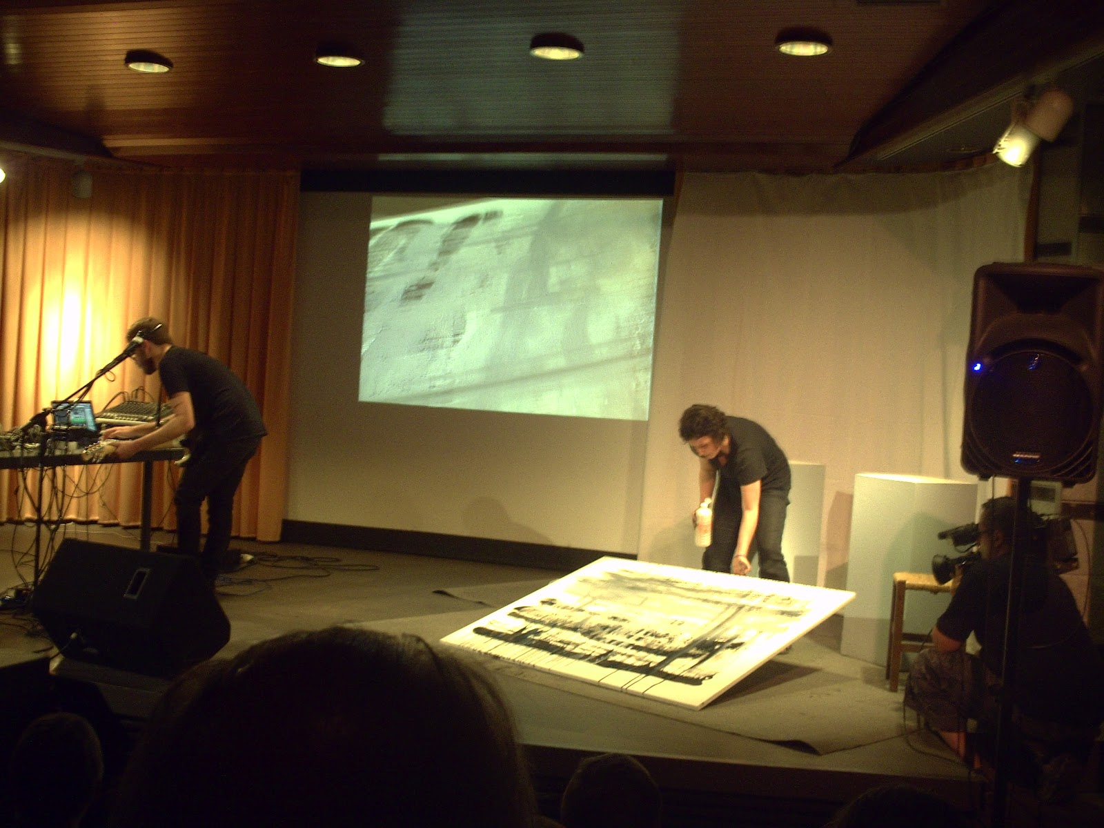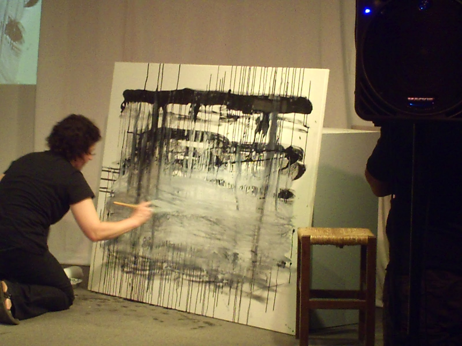 I de fet la “contundència” va ser el nexe, la impressió dominant, de la performance irrepetible que els primers premis Tendències van tenir com a acte inaugural, el passat dimecres 22 d’agost. La proposta que van fer els organitzadors del premi és que músics i artista, mostressin i combinessin els seus arts a l’escenari. Així que els No Parfum van posar en marxa les seves taules de so, gravacions i la guitarra elèctrica i la Marina Berdalet es va posar a pintar empesa per l’onada simfònica dels músics. L’espectacle era multisensorial: si els músics posaven al límit les capacitats auditives, la pintora no va ser menys amb la sorpresa de generar una obra nova, que revivia el seu estil característic de finals dels anys 90, en que feia participar els regalims i les taques de pintura carregada d’aiguarràs. Potser el més abstracte i expressiu dels estils que ha trobat i que ha revisitat en altres ocasions (“El ventre de la terra”, 2008). Gent del públic es va arribar a aixecar, no per aplaudir la potència i bellesa del conjunt, sino per considerar-ho massa estrident. La meva humil opinió és que ni els No Parfum, ni la Marina podien rebaixar propostes, perquè per alguna cosa se’ls hi havia donat el premi. I si hi havia un lloc públic on podien manifestar-se amb llibertat, era aquell, aquell dia. Llibertat i sinceritat és el que més valoro dels artistes i el que fa honor al seu esperit creatiu. Menys volum, com menys abstracció haurien significat, com a mínim, deu passes endarrere a la història de l’art català del segle XXI. Se suposa que tots sabíem on anàvem i, almenys a mi, em va aportar unes bones dosis de plaer.Un espai noble