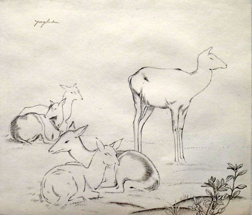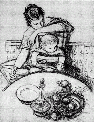 A dalt i a baix, dos dibuixos del mateix Pere Ynglada.
