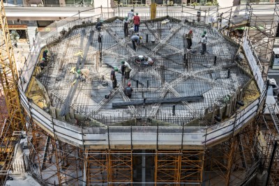 Vista del cimbori central, dedicat a Jesucrist, en construcció i que es preveu culminar el 2020