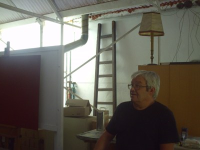 El motiu de la visita apostòlica al taller del José Luís Pascual ha estat, perquè de fet, el seu taller comparteix espai amb la seva pròpia sala d’exposicions. L’anomenada sala de Km 7 acaba de recuperar la seva tradició expositiva i ho fa amb una individual d’escultures recents del mateix José Luís Pascual. L’artista ha estat treballant tot l’any i el temps que no sabem, per tenir a punt una nova col·lecció d’escultures de ferro i també de cartró pintat. L’exposició és el seu “treball d’estiu”. Això i el que comporta de vida social en un territori que l’artista comparteix amb altres ànimes creatives. Les trobades, i sopars són habituals i a més el temps, ara, convida a disfrutar de les terrasses i les zones, com es diuen? chill-out! Pascual viu en un lloc molt bonic, amb un jardí ben cuidat i obres d’art per tot arreu.