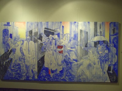 La pintura de “La ronda…” i les obres relacionades, ens parlen de la gent i també del mercat i sobretot dels productes. Fa dos anys l’Artigau ens parlava de que havia començat a pintar natures mortes. En la nova sèrie, l’artista resitua aquesta línia en el context del mercat i d’aquesta manera pot incloure la figura, a més que de parlar d’un espai barceloní que coneix prou bé. Però perquè n’hi diu “la Ronda”?