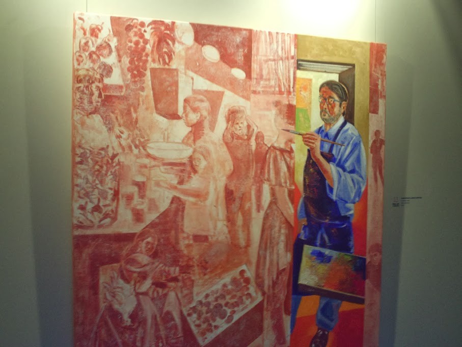 En unes de les pintures a l’oli hi apareix ell mateix, hi fa autoretrats. Artigau ens explica que va necessitar un mirall per fer unes mans en una pintura. I que es va veure reflectit en el mirall, a ell i a l’obra que estava fent. I aquest fet, li va agradar i li va suggerir de fer una sèrie que és una variant del gran quadre de “La ronda…”. En aquestes obres hi presenta detalls de la peça definitiva o reelabora alguns temes. També hi ha retrats concrets de néts seus, que es passegen pel taller i la pintura. I és pinta a ell mateix, pintant.