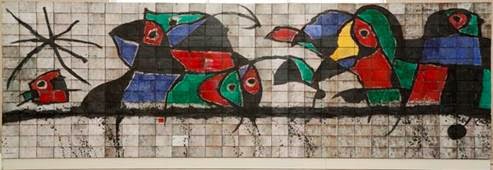 El mural de Miró fet el 1976, juntament amb Josep Llorens, per la casa IBM de Barcelona