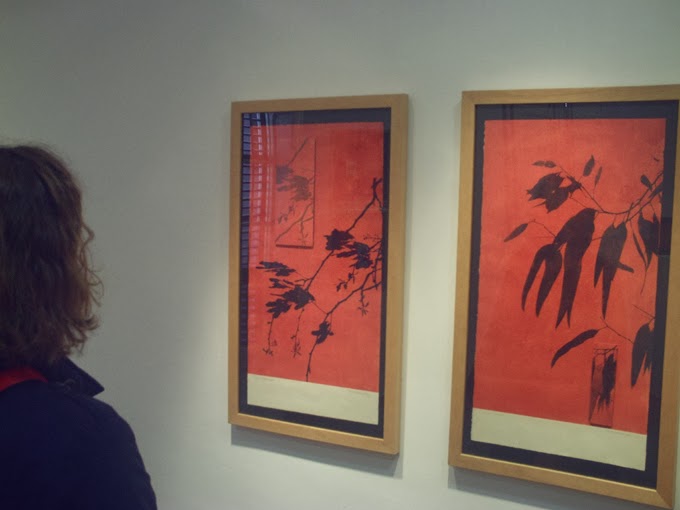 Això a la planta baixa. Pujant amunt les escales entrem en un altre registra: al primer pis hi ha els gravats. Una sèrie de fotogravats, de dos colors: negre i vermell intens. Tres colors si contem el blanc, que també juga. El negre, normalment actua com a generador d’uns perfils arboris i de fulles. Formes que semblen traços de tinta, però són fets amb planxes fotogravades. Però com arriba fins aquí? Hi ha molts secrets en l’origen d’aquestes obres! El vermell hi posa el fons i el conjunt resulta extremadament bell, poderós, vencedor. Té un aire orientalitzant. Però a més l’artista hi introdueix relleu: enganxa trossos de paper, que sobresurten uns mil·límetres de la base, amb la part corresponent de la marca de la planxa. D’aquesta manera, Permanyer dóna un valor més volumètric en els gravats on ho aplica. Em sembla, tot plegat un treball sensacional, a banda de polit i meticulós.