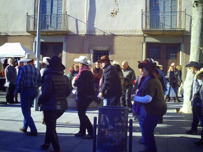 A la placeta amb el bust d’Anselm Clavé i un tros del seu carrer hi havia la concentració de moters. Hi havia força motos d’aquestes tonejades amb força ferro i cuir negre, així com parades de productes típics d’aquesta tribu de la carretera. Al migdia del diumenge, es ballava country. Em semblaven autòmats ballant tots al mateix pas i girant-se junts, al mateix temps. Però hi ha expressivitat individual, en aquest ball?