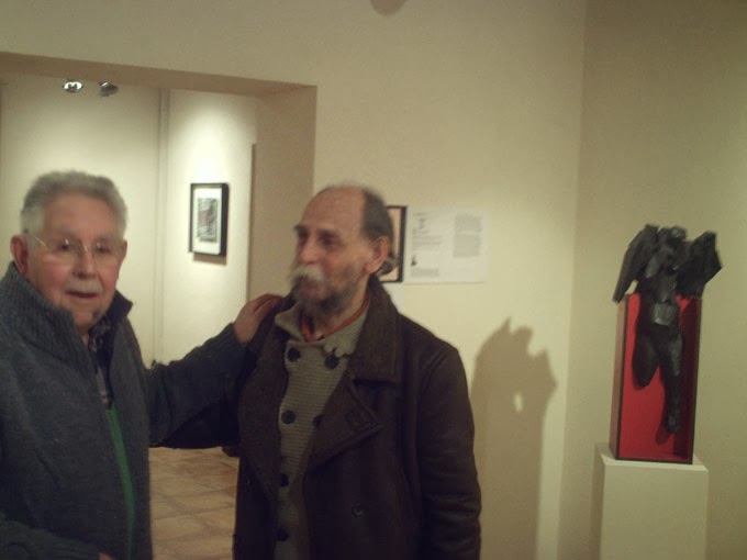 Dissabte a la tarda es va inaugurar aquesta exposició. L’acte era a les 7. Les fotos, però corresponen a una hora abans, que és quan hi vaig poder anar, abans no em sumés amb els companys del grup Baobab. El Ricart havia de venir al Marçó per canviar una peça i afegir les cartel·les amb els textos. Aquests plafons remarquen l’interès de Ricart per la lectura i d’aquesta com a base del seu treball. La peça que va substituir –la que va treure- era una de fusta fosca, de forma més com orgànica. La que hi va posar, havia esperat fins al final a dur-la, perquè fins al divendres a la nit, que no la va enllestir. L’escultura de fusta introduïda és germana de la que hi ha a la sala del mig. Són com dues caixes de fusta clara. Ricart intervé als marges, creant formes de joc amb volums, el buit i el ple. Respecta a la que va treure, aquestes escultures són més clares, més lleugeres, més austeres i també com més “essencialistes”. En l’escultura fosca s’hi recreava. En aquestes no hi afegeix més del que vol dir. L’escultura fosca s’aproximaria a una altra peça present al Marçó, que es troba a la primera sala i representa a un àngel. Ricart ens va explicar que aquests àngels surten de diverses lectures de textos d’artistes i filòsofs de primers del segle XX, que parlen d’àngels, com era el cas de Walter Benjamin. Les escultures angelicals posen forma a la descripció interpretada dels mots. Anar al Marçó i estudiar i analitzar com actuen aquestes interpretacions artístiques és el que s’espera de les ànimes que volen créixer culturalment. Fins el 16 de març es pot veure aquesta exposició, que també compte amb un catàleg, si bé no és pas com els dels temps d’abans de la crisi.