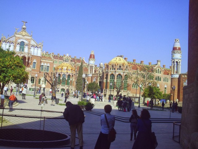 Sigui com sigui, la promesa de gratuïtat, la curiositat per la reforma o el mateix boca-orella, fan que anar aquests dies a Sant Pau cridi a molta gent. Sobretot en cap de setmana. Dissabte, a la 1 del migdia, el nostre grup va anar a buscar el final de la cua, amunt del carrer Cartagena, a l’altura de la Fundació Puigverd –això és 2/3 parts de la llargada longitudinal del recinte hospitalari-. Hi havia molta gent, però l’entrada era bastant progressiva. Amb tot vam tardar ben bé 45 minuts a passar la reixa. Però xerràvem i ens vam distreure bé. Després a dintre començava una altra mini-cua per fer el circuit de l’edifici principal i un tros dels passadissos subterranis. Un cop es sortia al pati, la gent s’escampava. Però hi havia molta gent, com demostren les imatges que vaig preparar per fer un reportatge visual i que podeu veure clicant aquet link.