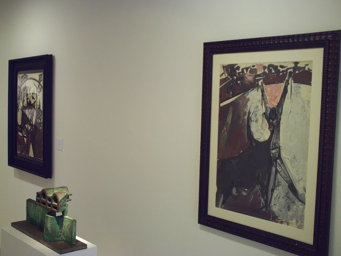 Els dibuixos de la tauromaquia corresponen a una etapa anterior a aquest llenguatge més aclarit i alegre. Es tracta de grans dibuixos on predomina la línea del dibuix amb tinta, actor que forma l’escena, els personatges i posa la salsa dramática de cada escena. És com si la línia, volgués generar una idea de traç continu, que per si sol, es carrega de tota la narrativa i dramatisme de l’escena. El color actua més de decorat, però sempre cercant grans efectes compositius. Els de la galeria han intentat organitar una visita guiada amb la filla de l’artista, a l’exposició, però inexplicablement, no hi ha hagut cuorum. No hem pogut revisar de viva veu, el significat d’aquestes obres, d’un dels grans artistes del nostre país. L’exposició encara hi serà fins el dissabte, 29.