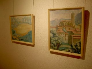 A l’entrada hi ha un dibuix d’una model del que en destaca especialment el retrat del rostre i la mirada. Aquesta capacitat de captura de l’expressió la retrobarem en d’altres retrats que l’artista ha dedicat al seu entorn familiar. Aquests dibuixos són amb llapis o carbonet. La mostra testimonia també la versatilitat de Musach amb diferents tècniques: a la sala del mig hi trobem un grup de dibuixos amb tinta xina. El que és una vista urbana em sembla d’una qualitat excepcional. Pel domini del traç i la capacitat sintetizadora per explicar l’ambient.