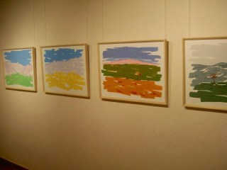 En les vistes del passeig i sobretot en l’obra darrera, és la superposició de taques el que ho explica tot. Per culminar l’exposició, Musach a preparat un conjunt de quatre quadres, dedicats a la línea de montanyes dels entorns de Centelles. Cada quadre representa un racó característic –Puigsagordi, Montseny, Tagamanent, Castell de Sant Martí. Els tons de cada un tenen una variant que es correspon amb una idea de les estacions de l’any. Tons apastal·lats, de cert aire serigràfic: és a dir, són paisatges fets amb forma de colors plans, sense volums ni sombrejats. I amb aquest aspecte taquejat, sense ser especialment expressionista, que Musach ha anat perfeccionant i que d’alguna manera s’ha convertit en el seu segell distintiu.