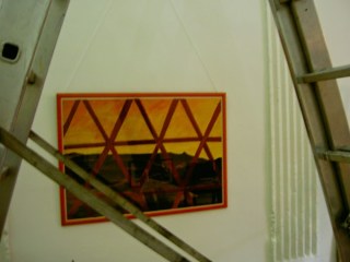 En l’apartat purament artístic, Sarrate ens aproxima una selecció d’obra pretèrita i nova. La més antiga testimonia l’apropament a l’obra del poeta, ja sigui per satisfer muntatges dramatico-poètics o per respondre a la seva intepretació visual dels versos. Els poemes d’El Cant d’Abelone o del Llibre d’Amic, són el principal material de treball, abans i ara. Fa més de trenta anys ja es va fer un muntatge, aprofitant la familiaritat de Sarrate amb el poeta i amb això altres persones de Centelles, reforçaven el seu paper actiu en la represa cultural dintre els anys de la dictadura franquista.A la Capella trobareu dibuixos i col·lages que ens proposen una visió del personatge d’Abelone. Però Sarrate ha représ la seva capacitat interpretativa, per fer noves obres que trenta anys després dels primers quadres vinyolians, inclouen els ingredients que l’artista ha anat afegint a la seva maleta biogràfica: una manera de pintar amb aiguada, dominiada per tons blaus i de gammes càlides. S’ha fiançat l’ús de materials trobats, com el mirall i les planxes de les vies.