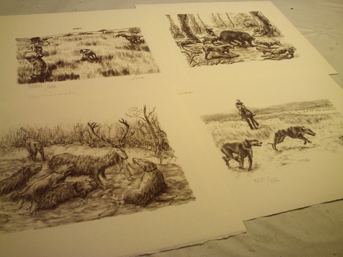 | Conjunt de les quatre litos dedicades a gossos de caça. |