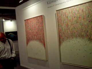 | Acrílics de Hur Kyune-Ae .La fira Swab no donava la impressió d’abarrotament. Però aprofitava tots els racons per penjar i mostrar obra. |
