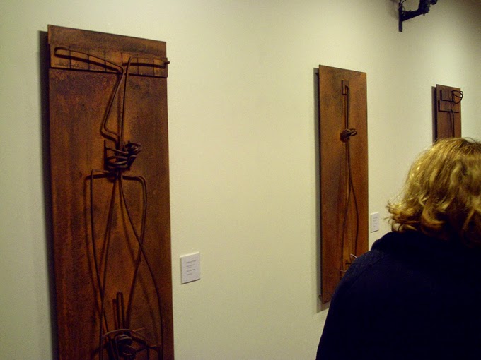 És en les tres planxes de ferro oxidat, de tons grocs i verdosos, amb barnilles doblades on trobem l’altra punta d’avantguarda en el treball de l’artista. I són de fet les peces que donen nom a la mostra. Les tres obres evoquen un poema de Paul Valery. Esbossos sobre el tema d’un serpent, que Ricart desenrotlla de forma diferent a cada obra: cada filament té el seu cap i la seva cua, originada en dos forats de la part superior. I d’un a l’altre extrem desenrotllen un argument fibrós de diferent complexitat. Com si el filferro fos la línia d’un llapis que tendeix a enredar-se, però sense perdre mai la identitat del traç. L’especulació sobre el significat de cada peça la deixo per la vostra imaginació, un cop visiteu l’exposició. Que de debò us recomano, com a testimoni de la força i originalitat d’un artista, que tot i les dificultats personals, no defuig nous reptes i fa fora la mandra i el defalliment per acomplir nous objectius.