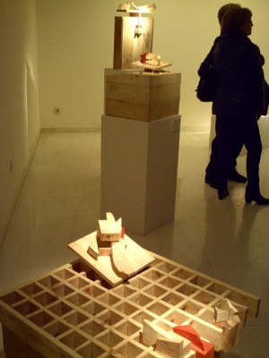Vic/ Centelles. Divendres al vespre s’inaugurava a la galeria El Carme de Vic una exposició amb peces noves d’escultura fetes per Josep Ricart. També alguns treballs pictòrics. Però sobretot hi ha peces de fusta i metall. L’últim que havíem vist de Ricart –això va ser al Marçó de Centelles-, era una espècia de caixa amb una forma orgànica a sobre, alegoria d’un poema. Tot de fusta, d’aspecta com d’art povera. Ricart ha continuat amb aquesta història fent assamblatges i acoplant-hi treballs de talla, en noves peces de fusta aprofitada i clara. La tònica sempre és una base geomètrica, que pot ser un espai, una caixa, espècia de pedestal o inclús una estantaria amb tensió. Cada “base” aguanta un comentari més concret, en forma de cos més o menys independent, també de fusta natural o pintada que evoca idees més concretes: naus, ocells… en definitiva cossos més o menys definits. El relat llenyós comenta poemes o fa referència a altres fonts textuals que demostren la passió de l’artista per la lectura o per temes concrets, com els àngels. Però aquest és un dels camins que ha seguit la serpent creativa de l’artista osonenc.