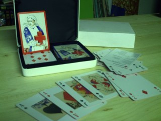En la conversa també vam parlar d’altres projectes de ben frescos: darrerament, Artigau, ha estat a Londres i sembla que l’estada l’hi ha reportat alguns contactes que poden obrir-li les portes a noves exposicions a allà. Artigau era a la ciutat del Temessis per concloure, amb un acte oficial, la seva col·laboració en la tasca d’il·lustració de baralles de cartes de pòker, encarregat per la Creu Roja d’allà. El joc de cartes es distribueix en un cofret-farmaciola blanca. L’artista es va ocupar de tots els dibuixos que va poder: va fer tant la cara del revers, amb dibuixos aquarel·lats de figures d’infermeres o personal de la Creu Roja, prohoms, etc. I també els símbols que identifiquen cada carta de pòker. Evidentment els jocs que es distribueixen són reproduccions digitals, però estan molt ben acabats i presentats.