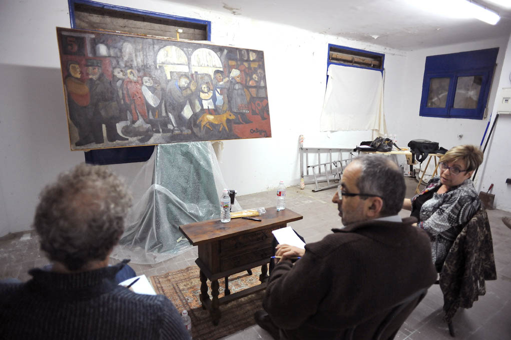 Però no va caldre el pla b. Vam trobar totes les claus i va anar bé. El fet és que amb la visita al taller de l’artista vam poder prendre nota de les coses que prepara: perquè en Francesc Artigau no és pas dels artistes que als 75 anys hagi abandonat les eines, sinó que segueix actiu. Fa poc va presentar una de les seves grans pintures, dedicades a una sessió de model al seu taller. La va presentar a Vinçon, local que per cert, tancarà. Però l’Artigau continua. És més: s’ha com reorganitzat i segueix casi un horari feiner indiscutible. S’equipara als botiguers i altres oficis que es troben al carrer de St. Pere mes Baix. La referència a artesans i gent de gremis em sembla molt apropiada en el seu cas i també és un punt per a mi, familiar i de coincidència amb ell. Però què està preparant?