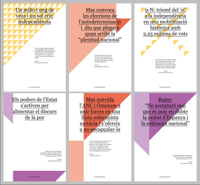 Efectivament el binomi de dissenyadors gràfics s’ha ocupat de narrar el procés independentista a través de titulars del diari Ara.