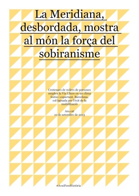 Centelles. A vegades sí que sembla que la història política recent del nostre país s’ha generat sobretot a través de declaracions, contradeclaracions i titulars a la premsa. I poc parlar-ne i dialogar en profunditat, tal com pertoca, del que realment suposa construir un nou Estat. Pot ser, per això han esgarriat el camí i trigaran més a recompondre el puzle i a convèncer a la majoria.Tot això ve a tom de l’exercici, aquest cop sí buscat i forçat d’explicar aquest procés independentista a través de titulars, muntats com a cartells. Projecte d’Alucinamandarinas que actualment podeu veure a les Finestres. La puntaria amb l’exposició una mica ja anava cap a que el cartell que seguís al 27S anunciés més aviat una proclamació.