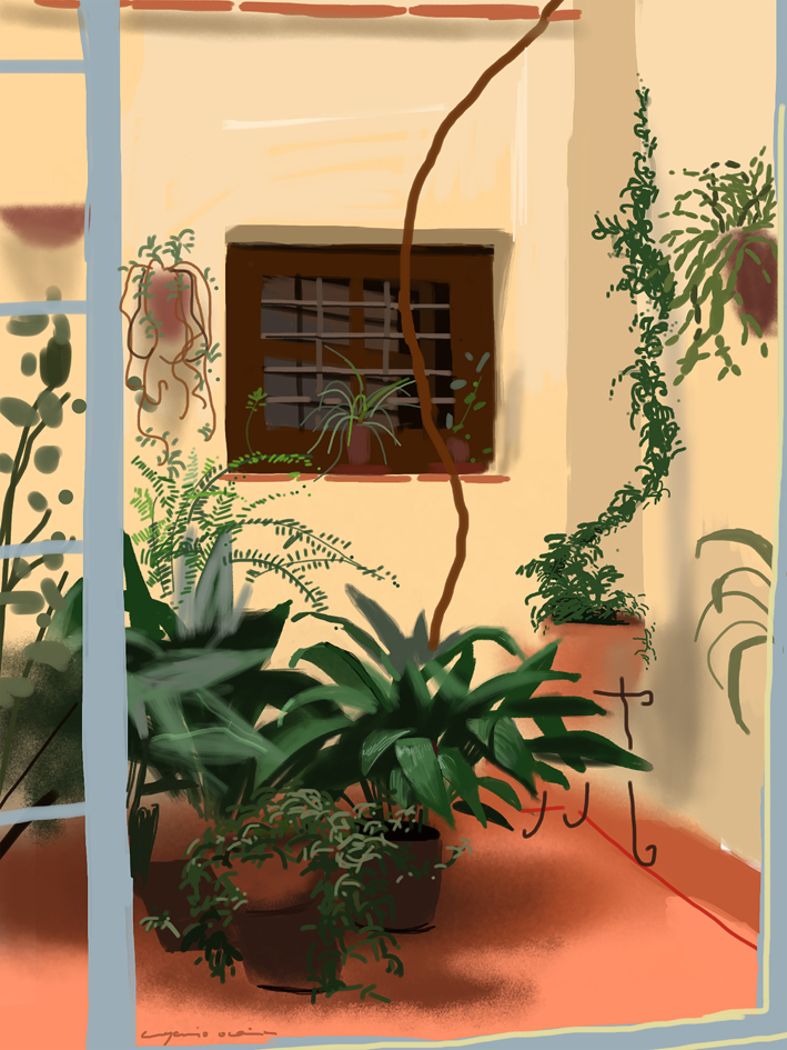 El simple mètode ja suposa un canvi de paradigma que hauria d’estimular i servir d’exemple als aprenents de pintors que a vegades viuen massa amorrats a la fotografia com a model. Ocaña ha resseguit llliurement, els passos de mestres anteriors de la pintura. Ell cita als impressionistes de Barbizon, Cezanne i també Hockney (amb aquest trobarà un punt d’afinitat amb l’Artigau).