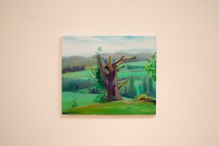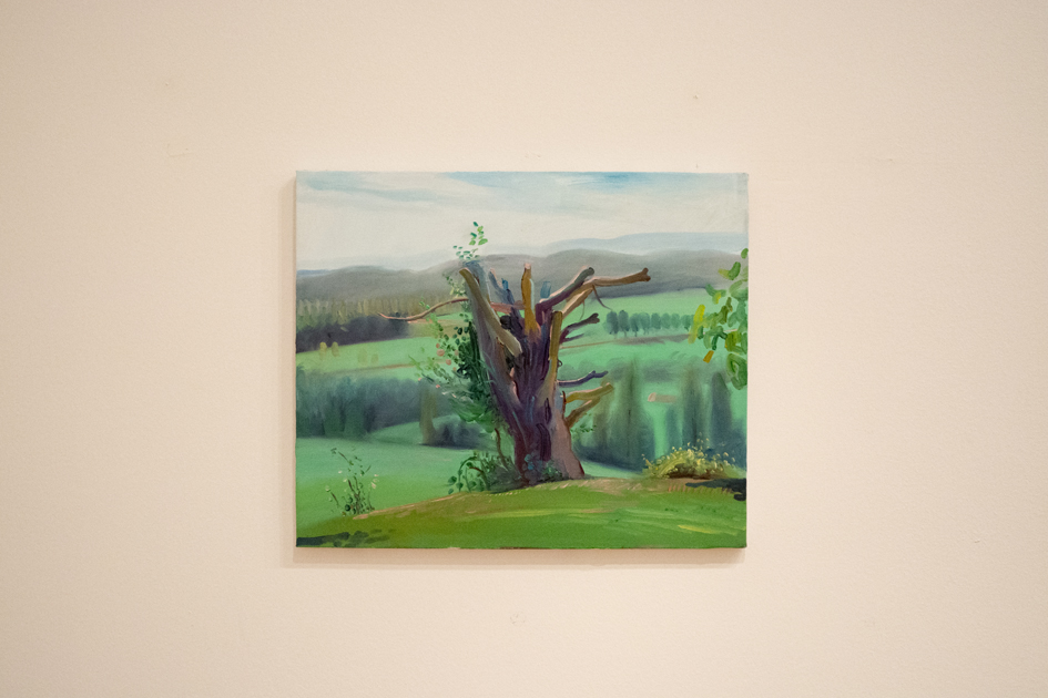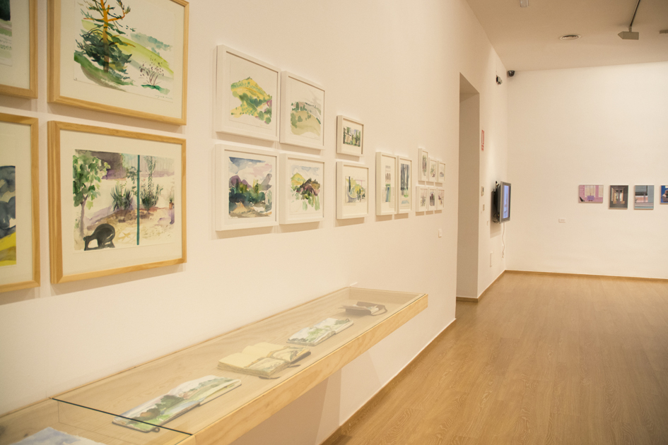 A més dels olis i els papers amb aquarel·la, també hi ha una secció videogràfica amb pintures fetes amb l’ipad. Les pintures materials estan dedicades a entorns rurals i paisatges més o menys silvestres a on l’artista s’ha desplaçat i ha treballat in-situ. Les pintures digitals corresponen a espais interiors. La factura és diferent. La idea de l’espai i els colors són de la mateixa ànima.