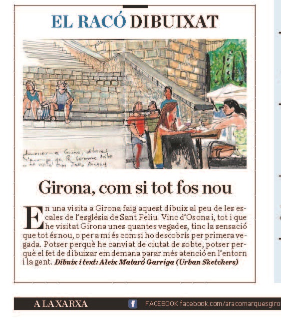 Olot/ Centelles. Fa unes setmanes el diari Ara va publicar un dels meus dibuixos a la secció Racó Dibuixat. La pàgina en qüestió sortia només a l’edició de les comarques de Girona i vaig procurar cercar algun col·lega, que diligentment pogués adquirir un exemplar i guardar-me’l fins que anés a buscar-lo. Fer excursions sempre bé de gust: així saludem al col·lega, recollim el diari i de pas visitem la zona i omplim de notícies el blog.