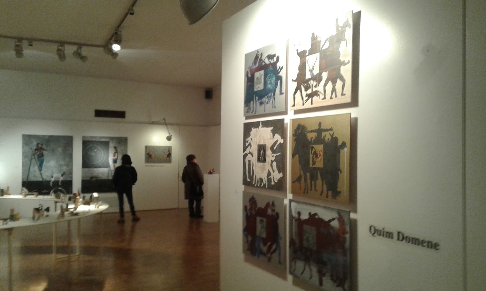 L’exposició que acull la galeria és una col·lectiva. Exposen: Dolors Rusiñol Masramon, Jordi Pagès Traveria, Narcís Gironell, Clara Oliveras, Anna Manel·la i Quim Domene. No te per què haver-hi un propòsit pactat entre els artistes: però el fet és que hi ha com un nexe: mostren una lectura desconfortant respecta la societat i l’estratègia, si bé sempre en art hi ha crear representant o interpretant, en aquests casos, tots ells suquen bastant en la via de la simulació i la poesia transformadora de les aparences.