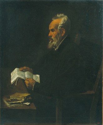 Però la pintura retrat del MNAC està allunyada, tant d’aquesta iconografia tant definida, com de l’explícita exaltació religiosa de la que Llull era protagonista, en el segle XVII, per part dels grups de defensors. Efectivament, és un retrat de lateral on hi veiem un home gran, amb barba blanca, crescuda, però no especialment llarga. Està com pensant la lectura d’un text que té a les mans. És la imatge més com la d’un intel·lectual o un home de raó. Els llibres i els papers corresponen als objectes del segle XVII. Si és algú del passat, se l’ha fet del “present modern”.