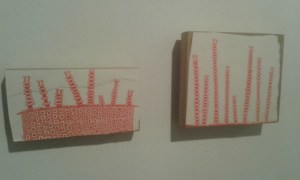 Un cop acabat el dibuix hi ha papers que Iglesias els ha enganxat en volums, convertint el treball en part de petites escultures.