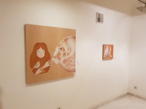 Vic/ Centelles. La Galeria del Carme de Vic té ara una nova exposició amb obra de la Núria Vall. L’extensa producció preparada, amb obres de gran i petit format, presenta encara una combinació d’elements que parlen d’un missatge ecologista. Però aquest cop les “fades” orientals s’han convertit en representants de les ètnies dels països que envolten el nord de l’esfera àrtica, les zones més fredes. Les noies d’amplis cabells i rostres clars es mostren dialogant (les mans així ho suggereixen) amb animals també nòrdics. Si hi ha un tros petit de terra blanca és per suggerir que el Pol Nord s’està fonent. Si hi ha un ocell és per simbolitzar un àngel protector. Si hi ha una flor és per evocar la Terra. En paraules de l’artista, són petits detalls que cal explicar per entendre millor com planteja les obres.