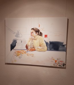 Des de dissabte passat el Centre d’art el Marçó vell acull una exposició de Francesc Artigau. És la segona mostra de l’artista barceloní al centre centellenc -la primera fa 14 anys-, però per aquesta ha preparat obra expressament. Concretament una bona col·lecció d’aquarel·les de gran format i coloristes que són retrats de models -la Frederique i la Diana- i alguna de les peça que fa ara carregades de figures. L’horror vacui d’elements també els trobem en la sèrie dels elaborats dibuixos amb tinta que completen l’exposició. L’artista va explicar que en els retrats de models, cada un és el resultat d’una sola sessió de treball, des de que la noia s’hi posa fins que marxa. I l’artista fa fins on té temps. Aquestes aquarel·les estan fetes a l’estudi, mentre que els dibuixos de tinta els sol fer els caps de setmana a casa seva. Són obres meravelloses.