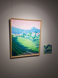 Les obres pertanyen a una mateixa sèrie dedicada als carrers de Centelles. Una visió urbana actual, tot i que no abunden ni els cotxes, ni les persones. Musach ha estat treballant en aquesta sèrie pictòrica darrerament i l’ha fet expressament pel nou espai. La primera obra de la sèrie és del 2018 i quan la feia, encara la va veure la seva dona, la Mercè, qui li va dir: “no la toquis més”. Aquest control en la pinzellada es nota en totes les obres. Les teles no estan del tot pintades o no van molt carregades, sino que són pinzellades lleugeres i hi ha molts blancs i taques. De fet en moltes obres és com si el pintor hagués posat primer el color i a sobre la línia. L’exercici taca-línia (que un servidor ha provat de vegades amb els dibuixos d’aquarel·la, amb bons resultats) arriba a un apogeu en el quadre dedicat al mercat, on hi ha una gran taca blava a primer terme i a sobre hi dibuixa l’ambient de persones i parades. També són molt interessants el conjunt de pintures de petit format que són els esbossos previs a la pintura definitiva, que es poden veure a la sala petita. M’agrada molt el quadret dedicat al caminet de’n Nasi. L’ampliació a pintura de mitjà format manté el clímax ambiental agradable de tons verds i roses. Per aquesta exposició i no se si serà habitual, s’ha editat un catàleg.