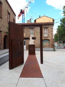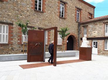 Domene va acceptar l’encàrrec i aquest mes de juny –l’artista ho va anunciar dilluns 15- l’escultura “Conversation avec Manolo” s’ha instal·lat prop de l’ajuntament, a un espai arreglat de l’avinguda Clemenceau. L’obra de Domene inclou una escultura original del Manolo, “la Catalane”, de pedra, del 1923, dedicada al seu torn, al músic Déodat de Séverac. L’escultura de Manolo s’aixeca sobre un pedestal. Aquesta va precedida per un camí de ferro amb el nom siluetejat de la quarantena d’artistes, que van passar per la vila durant el segle XX. Noms que van convertir Ceret en una porta d’entrada de les noves tendències artístiques. Per això al començament del camí, s’alça una porta oberta. A la fulla s’hi disposa un poema, “L’olivier” del 1921, del Manolo i també hi ha un relleu amb una taula amb tot d’objectes relacionats amb l’artista, com les mans i eines. Domene ens precisa que la seva obra està feta de “ferro corten, ferro de foneria, acer inox i metacrilat amb llum”. Els tons rogencs del ferro i el to clar de la pedra donen un aire molt digne a aquest monument que és de dimensions humanes. És una obra interessant i una altra cita ceretana.