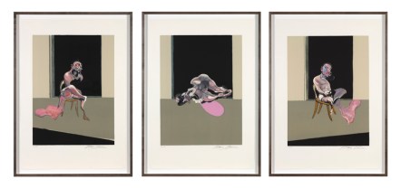 Francis Bacon (Dublín, 1909-Madrid, 1992) ho tenia com un mitjà de reproducció fidel de les seves pintures. I l’hi interessava poder divulgar tant la composició com el color. Per això practicava sobretot la litografia. Si bé també s’exposen algunes aiguatintes. Bacon treballava amb col·laboració amb impressors que l’hi asseguraven un bon ajustament cromàtic.
