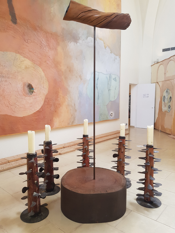 A fora, de nou a la col·lectiva, ens trobem amb més escultures com la que ens proposa Camí qui connecta amb Guinovart amb el record a la terra, la cultura de l’entorn i amb els materials. Les connexions es van retrobant en la desena de peces i el diàleg es va enriquint.