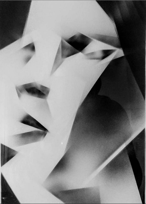 Però la presentació a les Finestres d’El Trabuc es fa a través d’una altra sèrie de peces, on hi representa cares i cossos, utilitzant com a tècnica l’aerògraf. Això vol dir una pistola d’aire carregada de pintura. En aquest cas utilitza tant sols pintura negre i tapant parts i pintant formes anguloses, Capella, va experimentant i dóna forma a rostres i figures, amb parts més clares, amb menys pintura, i d’altres més fosques, amb més matèria, donant lloc a ombres, forma i expressió. No ho és ben bé, però les obres tenen un aire cubista. A Instagram, Capella descriu aquestes obres com “geometries emocionals”, però per a l’exposició a Centelles ho ha redefinit com “geometries interiors”. Perquè, com diem són formes geomètriques que sobreposades i amb més o menys pintura projectada fan les formes. Formes que poden ser rostres o també màscares i que tenen una dimensió psicològica.