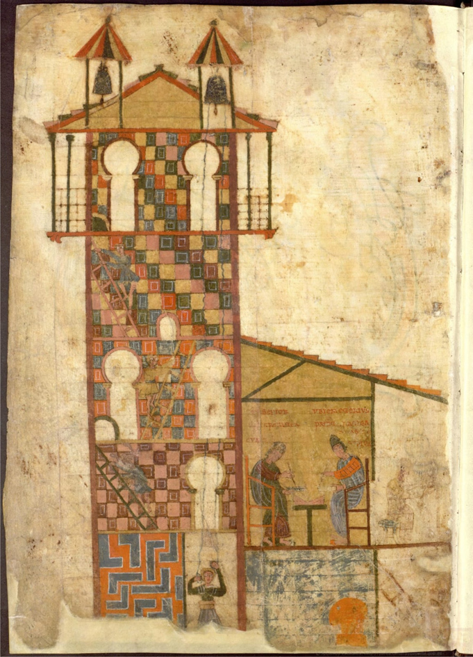Segons les nostres dades, el Beatus de Tábara té un centenar de folis, però de les il·lustracions que n’hauria tingut moltes, només se’n conserven nou. Hauria estat fet pel monjo Magius, considerat un gran mestre, i acabat per Emeterius, el 27 de juliol del 970. En un dels seus folis més coneguts s’hi representa una torre amb monjos preparant llibres i escrivint i il·luminant. Representen al propi Emeterius i a Senior. La torre seria un element característic del cenobi i l’actual església romànica té una torre que la vol recordar.