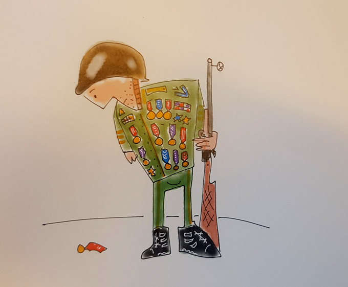 Avui m’he fixat per exemple amb els diversos dibuixos dedicats a la guerra. Protagonitzats per militars super-condecorats que perden les medalles. O que tenen de mascota un tanc o un “ossito”. O la vinyeta del tanc que pesa tant com l’ocellet -de la pau. No puc treure del cap la situació que viu l’Afganistan. Pascual envia records a tota la gent de Centelles, poble del que se’n recorda molt i hi té i tenia molts amics.