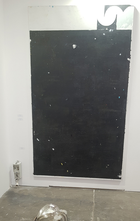 Les coses vistes recentment influeixen en la tria per la fira: vam descobrir fa poc el nou premi Centelles, del Jordi Vila. Doncs a Swab vaig veure una gran pintura que feia pensar amb els seus plantejaments. Una pintura negre de Manuel M. Romero, dintre l’espai de la galeria murciana Artnueve. Romero també fa formes planes, però en la seva pintura hi havia una gran zona negre que donava joc per petits accidents.