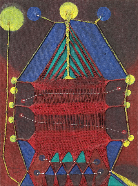 Balumar també fa una obra de caràcter abstracte, però en un altre direcció. Els elements formen geometries complexes. La pintura serveix a vegades per emfatitzar o crear atmosferes oníriques. A mi em fa pensar una mica amb els universos d’un Joan Ponç (1927-1984) o de l’Amèlia Riera (1928-2019). Són obres sòbries, de tonalitats contingudes, compositivament bastant racionals i un aire surrealista. És la seva manera de ser expressius.