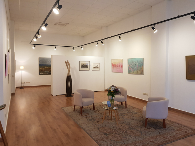 Deu anys calia celebrar-los i la Cristina va plantejar una exposició que al mateix temps és un resum i suposa una mirada endavant: parteix d’artistes de la galeria i se’ls hi va demanar obra que formalment i d’alguna manera tingués clarament representat la línia d’horitzó o una mena de divisió de la composició que inspirés espais diferenciats, distància i convidés a repensar el futur des de les arts.