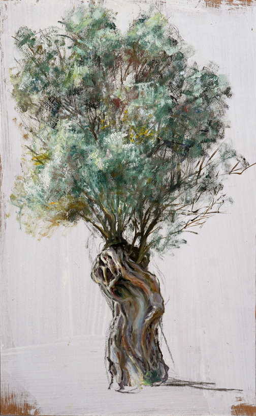 Hi ha uns altres arbres pintats, on destaquen uns xipressos. Però em semblen menys espontanis. Tot i que em suggereixen una estranya associació: la forma que la pintora aïlla amb aquest conjunt d’arbres i xipressos, em recorda la silueta i la forma subjacent de la basílica de la Sagrada Família. Hurtuna fins el 14, Feduchi fins el 17 d’abril.