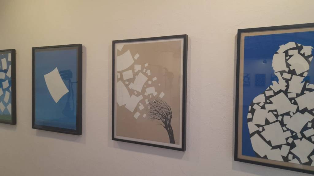 L’altre sèrie nova està protagonitzada per uns papers airejats. Fulls que com els estornells voleien surtin d’una diversitat de situacions (volcans, arbres, animals, persones, fulls solitaris, etc). L’artista se sent una mica l’alter ego de cada escena. Es mostra desenganyat per un temps on els esdeveniments s’emporten somnis, projectes i il·lusions.